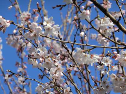 太陽の輝きと同時に、大領桜の開花が広がっています。