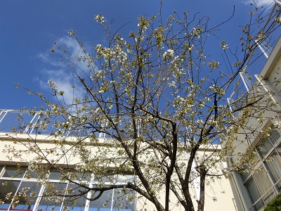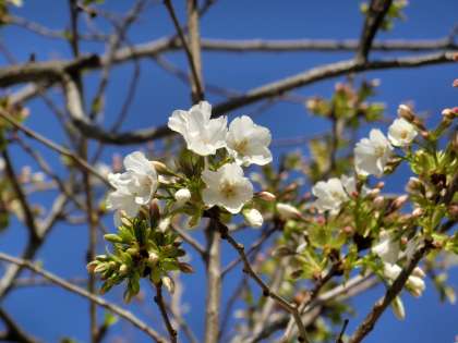 白い花びらの大領桜は、少しゆっくり開花が始まっています。