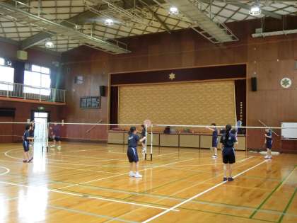 体育館では、バレーボール部、バドミントン部が頑張っています。