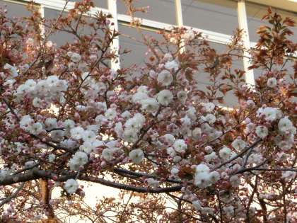 中庭の八重桜。