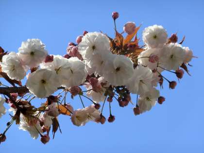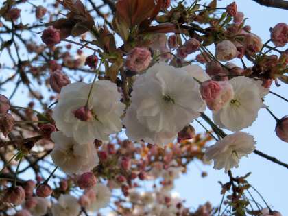 大領八重桜は、早くも三分咲きから四分咲きに。