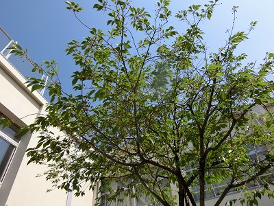 中庭の桜は、葉桜へと。