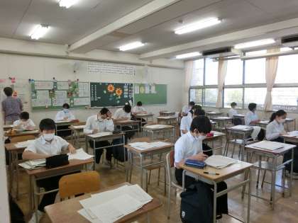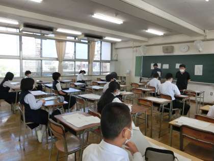 教室では、担任の先生、教科担当の先生から連絡事項がありました。