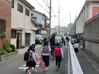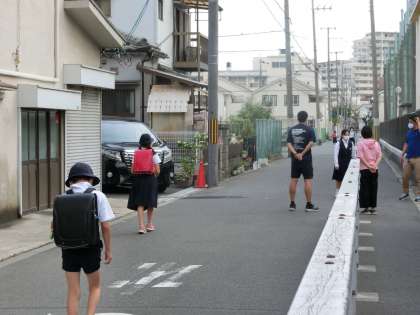 まだ分散登校期間ですが、児童さんと中学生が揃い、