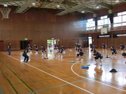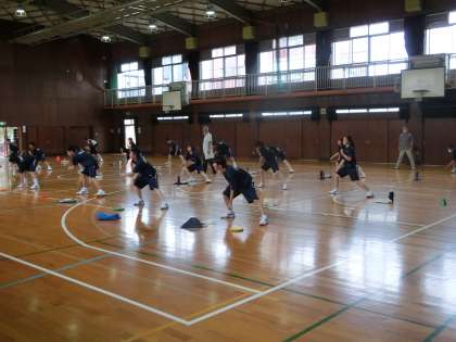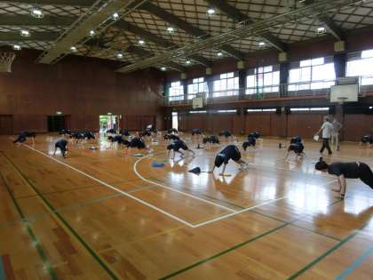 二測定を行い、体育館では音楽に合わせてのダンスタイムです。
