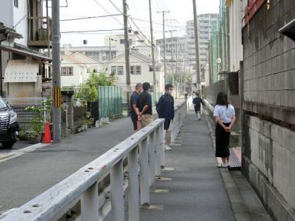 太陽が顔を出し、3年生が元気よく登校してきました。