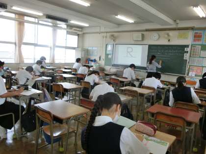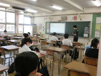 生徒たちは、休み時間に水分補給をしながら、頑張っています。