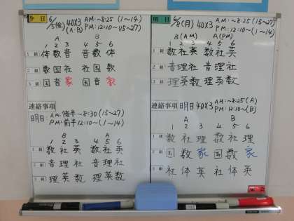 2・3年生は、出席番号後半のBが午前の部、出席番号前半のAが午後の部となります。
