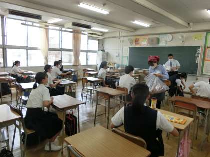 生徒たちが机の上に、ランチョンマットを引き始めました。