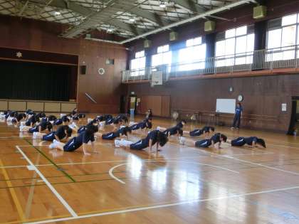 体育館で、女子体育が行われています。