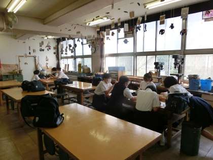 被服室では家庭科部、美術室では美術部が、
