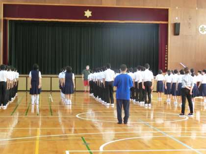 水曜日の朝、1年の学年集会が体育館で行われました。