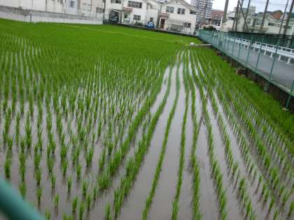 お隣の水田。稲の成長が著しく、緑が鮮やかになってきました。