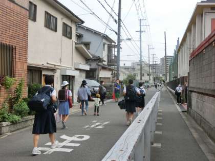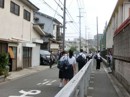 涼しい朝。児童さん、生徒たちが登校してきました。