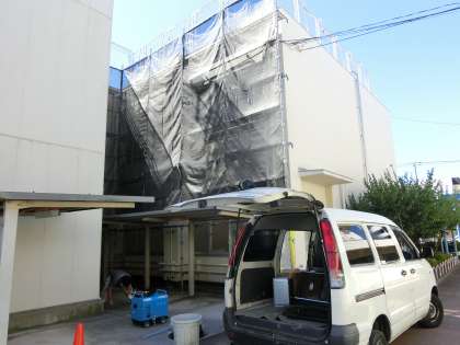 高圧洗浄で、校舎や窓をキレイにしていただきます。