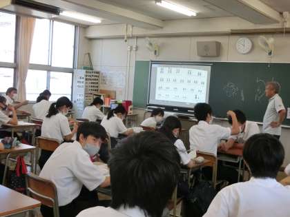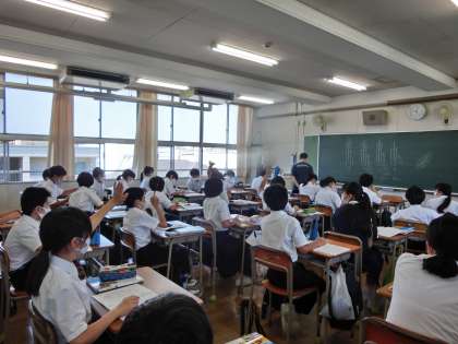 1年の理科では、生徒が積極的に手をあげています。