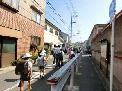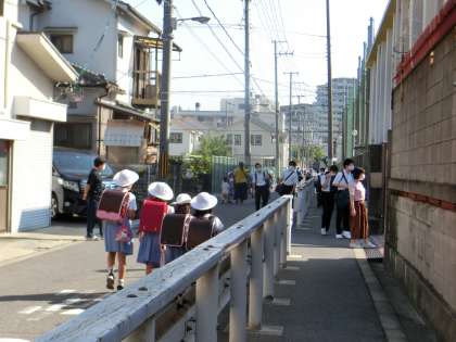 暑さが増す中、児童さん、生徒たちが登校してきました。