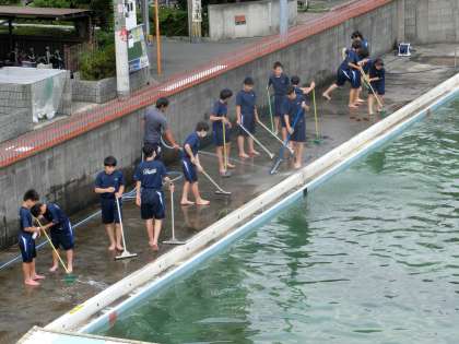 7月のプール開きに向けて、今日からプール清掃が始まりました。