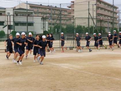 テニスコートでは、テニス部員たちの掛け声が響いています。