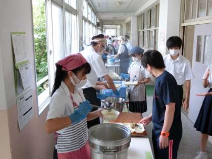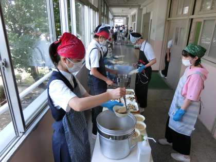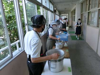 手を洗い、三角巾・エプロンをつけ、手際よく動きます。