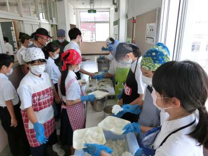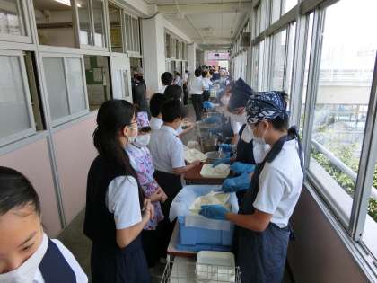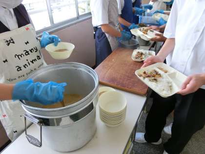 給食再開で半月たち、当番生徒たちの手際もよくなってきました。