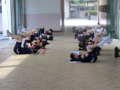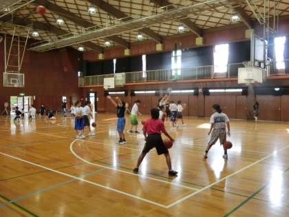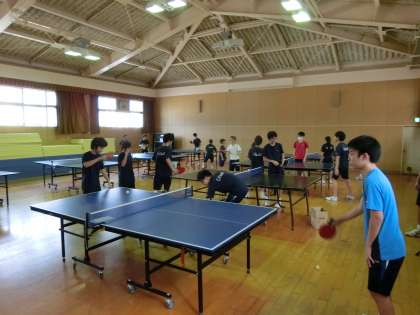 体育館ではバスケットボール部、格技室では卓球部が練習しています。
