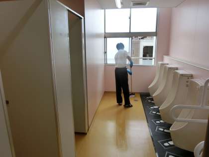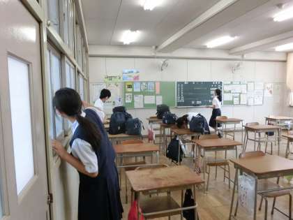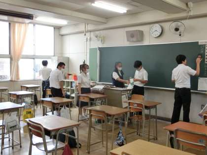 教室や廊下をキレイにした後、消毒作業が待っています。