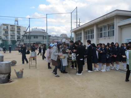 生徒の皆さんは、開会式の後、整然と並んでお餅や豚汁をいただきました。冷たい風の吹く師走の伝統行事が今年も無事に行われ、「美味しい、美味しい。」という元気な声が聞こえていました。