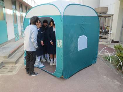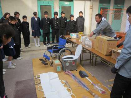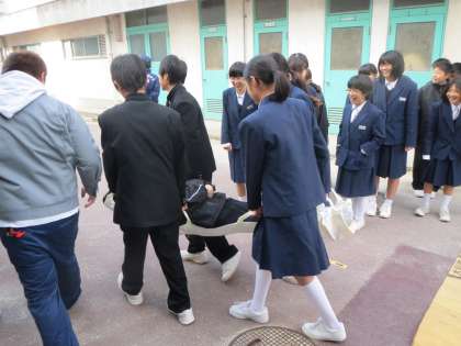 本校の体育館には、救命活動の必要な資材や機材が保管されています。今回の訓練で住吉区役所の担当職員のみなさんから車椅子やタンカーなど資材等の説明と緊急時の使用方法について説明とともに訓練も実施していただきました。寒い中ありがとうございました。子どもたちも大変に熱心に取り組んでいました。