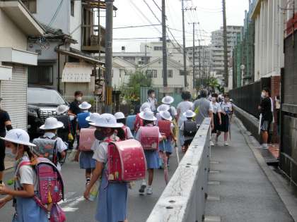 激しかった雨も、生徒たちの登校時間にはおさまり、