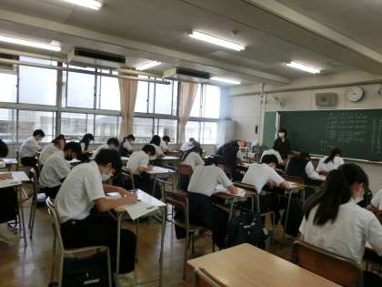 本日は、3年生が第一回目の実力テストを行っています。