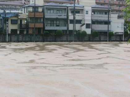 グラウンドは短時間でいくつもの川ができています。