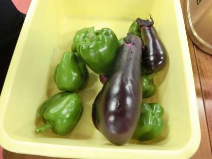 学校の畑でとれた夏野菜を活用します。