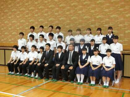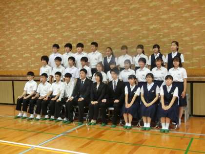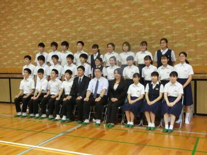 あいにくのお天気ですが、テスト終了後に学級写真を撮影しました。