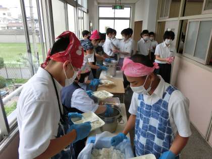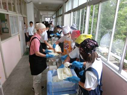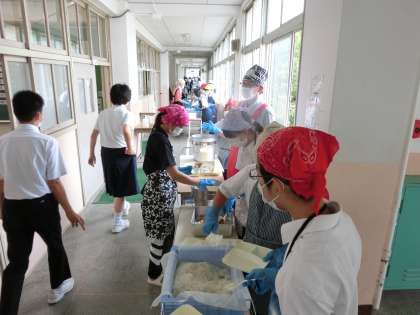 午前の授業が終了し、お天気の中での給食となりました。