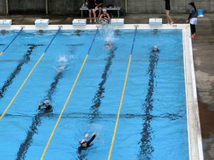 男子は平泳ぎ、女子はクロール、バタフライの練習です。