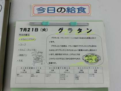 今日のメニューは、「マカロニグラタン」「チキンスープ」です。 お腹いっぱい、いただきましょう。