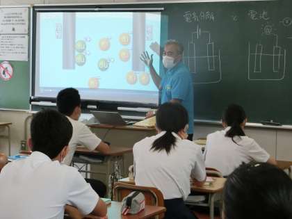 理科は、電気分解と電池、イオンの関係を復習しています。