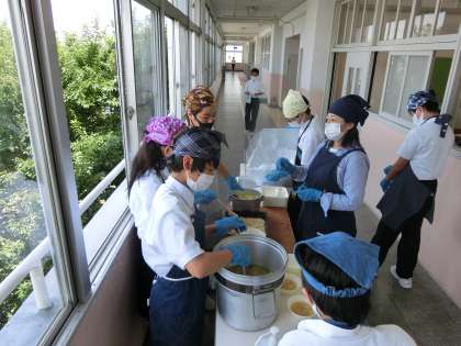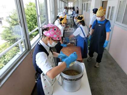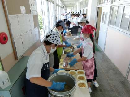 4時間目の授業が終了し、給食の準備に入りました。