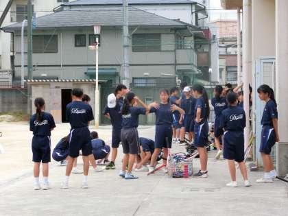 大勢の部員たち、コーチの指示のもと、試合形式が始まります。