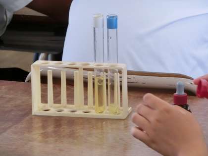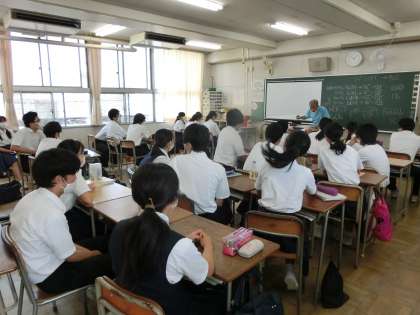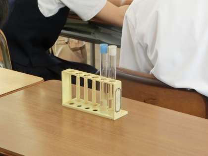 エアコンのない暑い理科室を避けて、今日は教室で実験となりました。