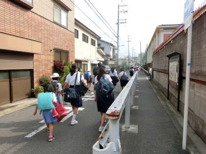 暑い中、児童さんや生徒たちが登校してきました。