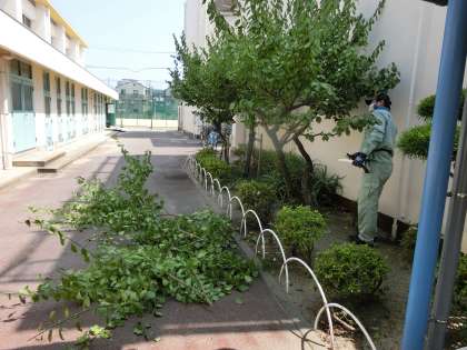 枝や葉が密集し、よく見ると虫がたくさんついています。