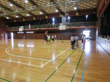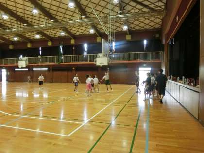 蒸し暑い体育館ですが、頑張っています。