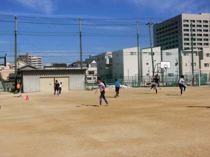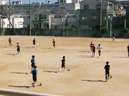 サッカー部が汗を流しています。