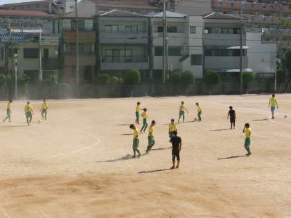 猛暑の中、本校のグラウンドで、サッカー部のブロック大会が開かれます。