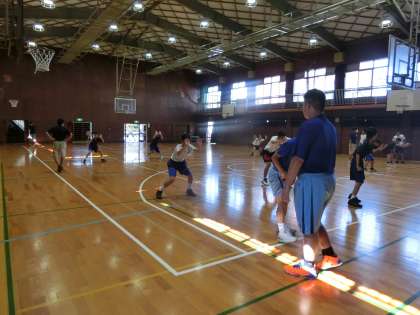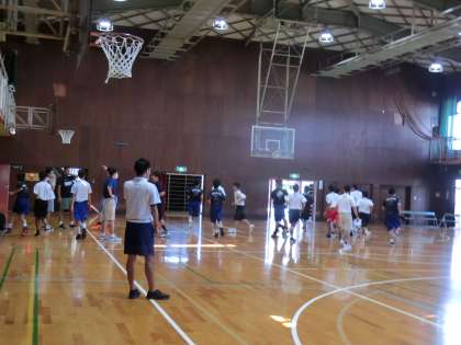 体育館では、男子バスケットボール部の合同練習。
