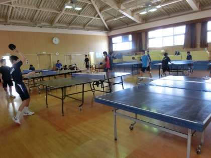 格技室では、卓球部が汗を流しています。