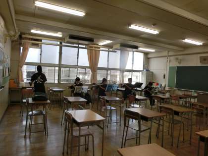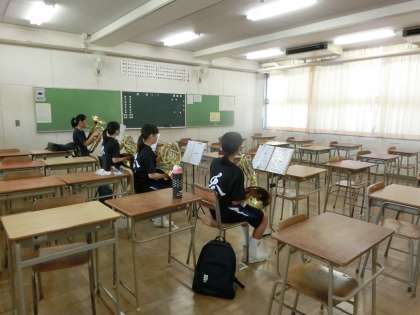 吹奏楽部は、それぞれ分かれてのパート練習です。