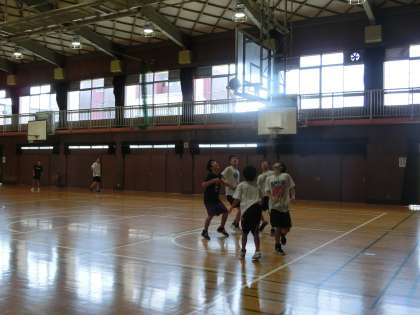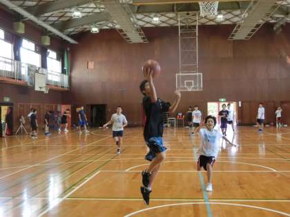 体育館は、午後から男子バスケット部が練習しています。